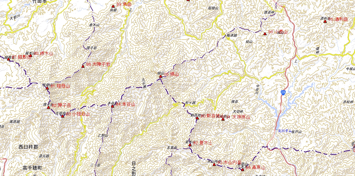 | 86→89 | 大障子岩 | おおしょうじいわ | 1451 | ②2022.02.09 ①2020_08.06 |